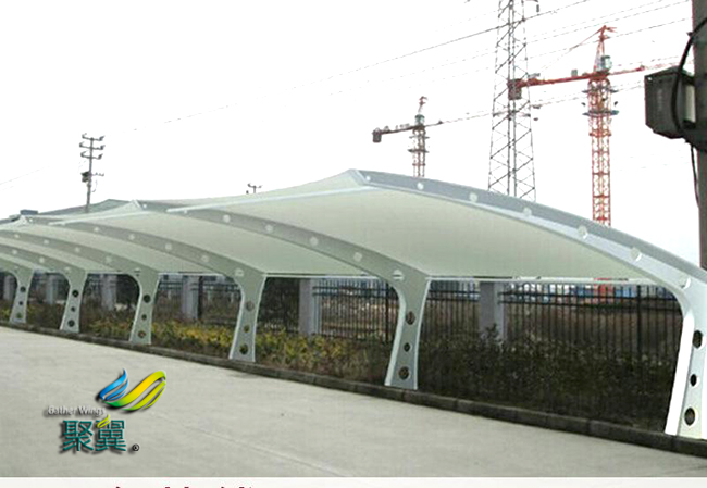 膜結(jié)構(gòu)車棚的透光性好,膜材的外表有防紫外線的共擠層,可防止太陽紫外線引起的樹脂疲勞變黃。外表共擠層具有化學(xué)吸收紫外線并轉(zhuǎn)化為可見光。