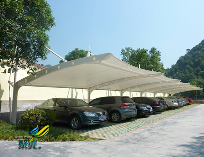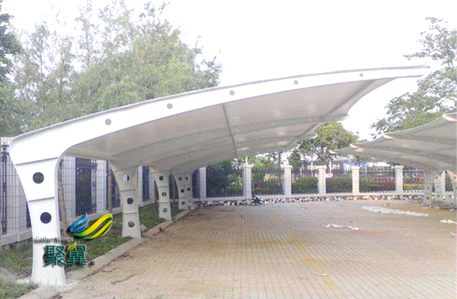 鋼膜結(jié)構(gòu)車棚之間的連接是安全的、合理的,看起來美觀。