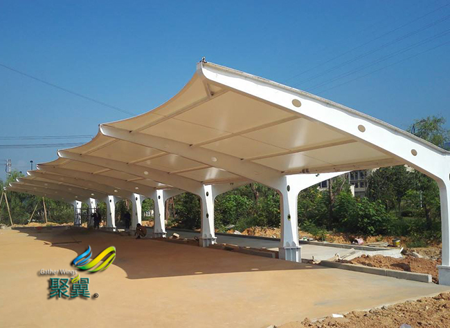 膜結(jié)構(gòu)車棚包括膜體擴(kuò)展,連接在固定的地方。 張拉膜結(jié)構(gòu)車棚張起重形成擴(kuò)大前體的膜,鋪設(shè)平臺(tái)上的臨時(shí)面料,大跨距橋架保護(hù)膜免受損壞,嚴(yán)格按照以啟動(dòng)確定的膜體,膜清洗,打開(kāi)包裝。