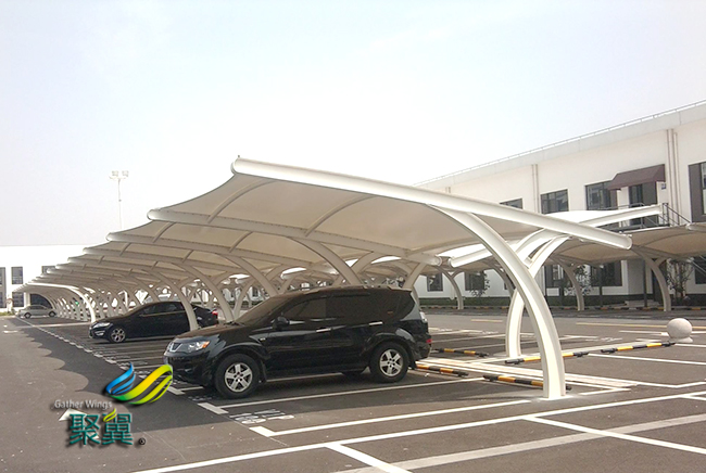 膜結(jié)構(gòu)車棚跨度空間大指出其因?yàn)樽灾剌p,膜結(jié)構(gòu)車棚修建能夠不需要內(nèi)部支撐面大跨度掩蓋空間,這使大家能夠列靈活計(jì)和運(yùn)用修建空間,描繪出愈加有構(gòu)思的修建。