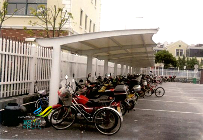 雨棚多為白色,膜結(jié)構(gòu)車棚很有現(xiàn)代感,不僅有著很高的技術(shù)含量還有相當(dāng)程度的藝術(shù)感染力,膜結(jié)構(gòu)車棚曲面具有很強的塑造性,能夠根據(jù)需要進(jìn)行任意變化,設(shè)計師可根據(jù)整體環(huán)境進(jìn)行設(shè)計,膜結(jié)構(gòu)車棚建造出具有代表性的形象工程。