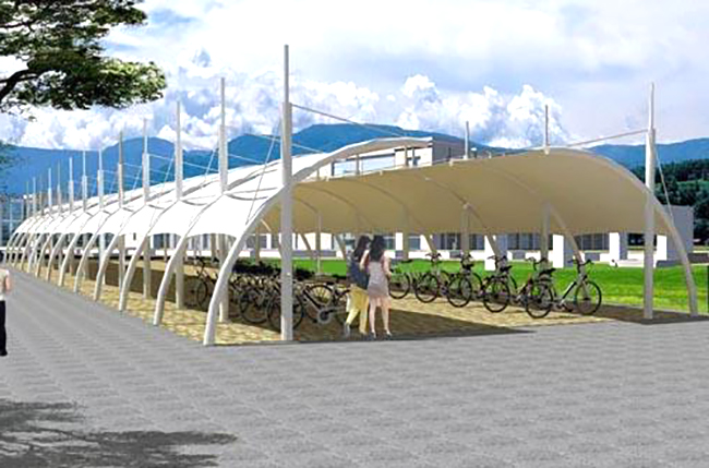 膜結(jié)構(gòu)車棚與以往的舊式車棚相比,結(jié)構(gòu)更加輕盈,而且在使用中比較穩(wěn)固。膜結(jié)構(gòu)車棚的材料使用了高分子膜結(jié)構(gòu)車棚材料和支撐構(gòu)件共同組成,并且能根據(jù)支撐構(gòu)件的高低位置不同而呈現(xiàn)不同的形狀。因此在教育,商業(yè),體育館等公共場所都有很廣泛的應(yīng)用。