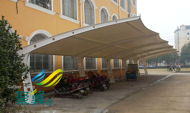 膜結(jié)構(gòu)車(chē)棚的應(yīng)用得到了迅速發(fā)展。膜結(jié)構(gòu)車(chē)棚的出現(xiàn)為建筑師們提供了超出傳統(tǒng)建筑模式以外的新選擇。