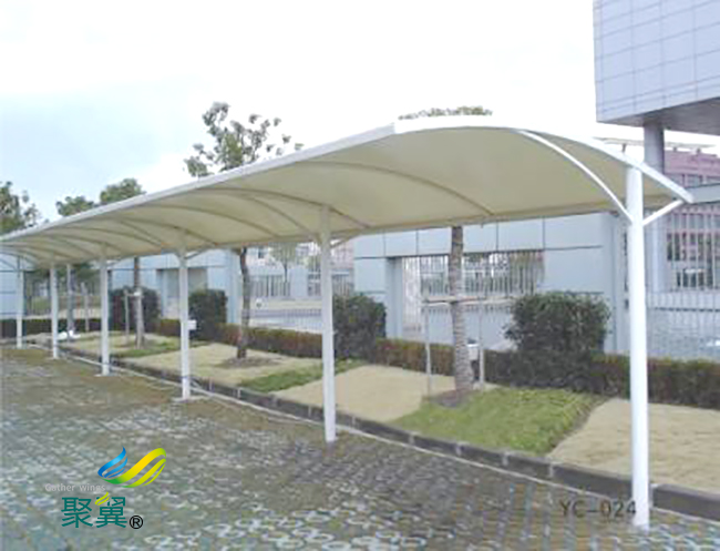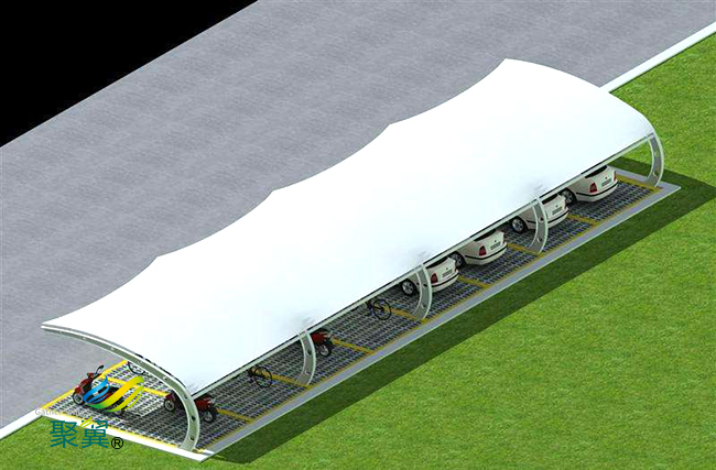 膜結(jié)構(gòu)車棚自行車棚不只具有美麗的外觀、特性的外型并且其功用也對(duì)比突出,膜結(jié)構(gòu)車棚是城市綠色化建造的一大輔佐。