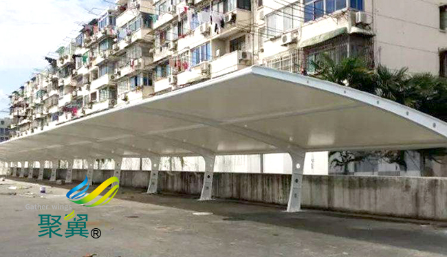 膜結(jié)構(gòu)車棚自行車棚不只具有美麗的外觀、特性的外型并且其功用也對(duì)比突出,膜結(jié)構(gòu)車棚是城市綠色化建造的一大輔佐。