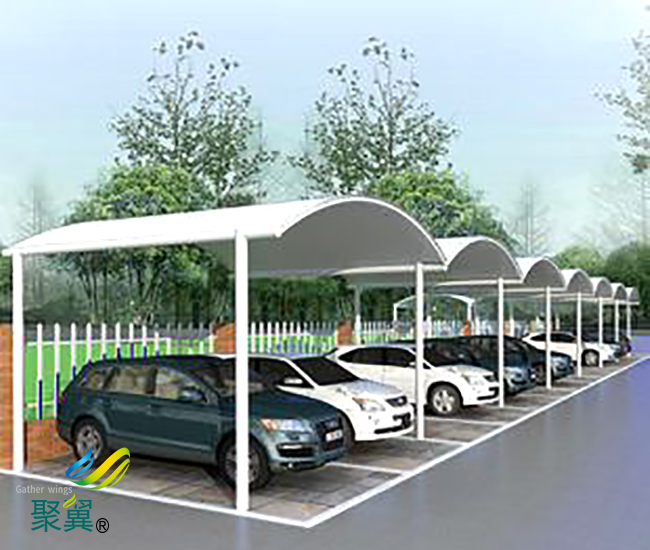 膜結構車棚PVC材料的主要特點是強度低、彈性大、易老化、徐變大、自潔性差,但膜結構車棚價格便宜,容易加工制作,色彩豐富,抗折疊性能好。