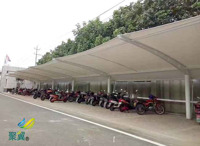 膜結(jié)構(gòu)車棚自行車棚不只具有美麗的外觀、特性的外型并且其功用也對(duì)比突出,膜結(jié)構(gòu)車棚是城市綠色化建造的一大輔佐。