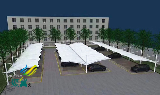 膜結(jié)構(gòu)車棚*值得一提的是膜結(jié)構(gòu)車棚可以根據(jù)支撐構(gòu)件的位置和高低排列組成不同的形狀,這在金屬膜結(jié)構(gòu)車棚上是無法想象的。
