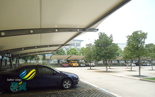 膜結(jié)構(gòu)車棚自行車棚不只具有美麗的外觀、特性的外型并且其功用也對(duì)比突出,膜結(jié)構(gòu)車棚是城市綠色化建造的一大輔佐。
