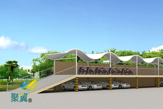 膜結(jié)構(gòu)車棚自行車棚也是一種綠色交通設(shè)施,是市民們的自行車停放場所。創(chuàng)造出更好的膜結(jié)構(gòu)車棚自行車棚關(guān)于城市的綠色環(huán)境大有協(xié)助。