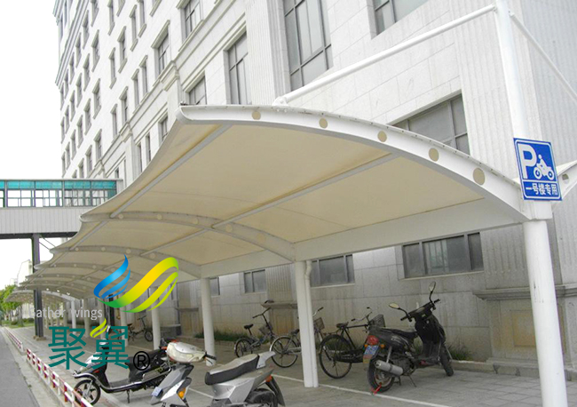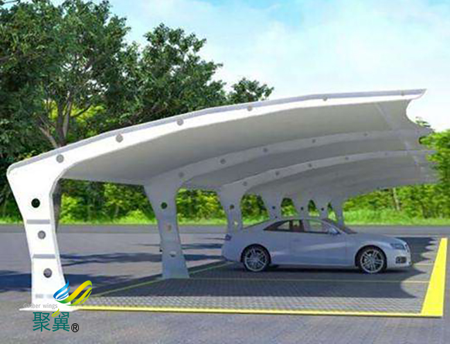 膜結(jié)構(gòu)車棚藝術(shù)性:除了一般雨蓬不可比擬的實(shí)用、耐用、遮風(fēng)擋雨的功能外,膜結(jié)構(gòu)車棚雨蓬更是一座雕塑,一件藝術(shù)品,給人美的視覺(jué)享受。