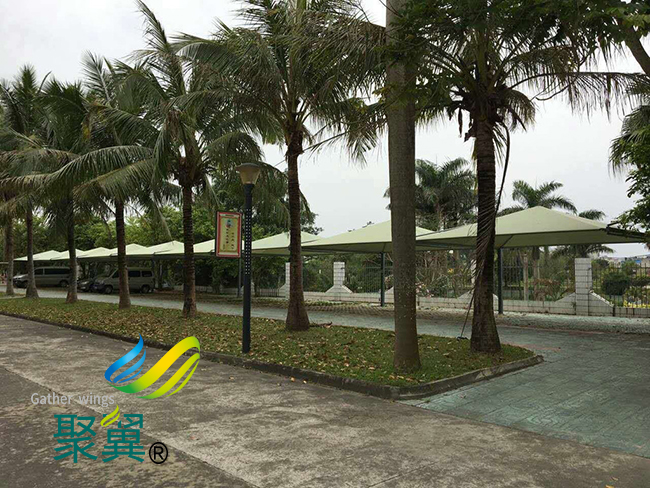 膜結(jié)構(gòu)車棚如何在環(huán)保行業(yè)應(yīng)用,說到膜結(jié)構(gòu)可能很多朋友見到*多的就是停車棚膜結(jié)構(gòu)。 膜結(jié)構(gòu)車棚和傳統(tǒng)材料相比,膜材每平方米的重量遠(yuǎn)遠(yuǎn)低于玻璃、彩鋼瓦、陽光板等,這也就是說,膜材的支撐結(jié)構(gòu)受力更小,支撐材料更簡(jiǎn)便,膜結(jié)構(gòu)車棚結(jié)構(gòu)顯得輕盈美觀大方。 膜結(jié)構(gòu)車棚膜材韌性高、耐腐蝕性強(qiáng)、強(qiáng)度高的特點(diǎn),簡(jiǎn)直就是環(huán)保領(lǐng)域應(yīng)用材料的絕佳選擇。