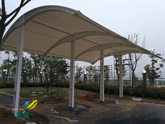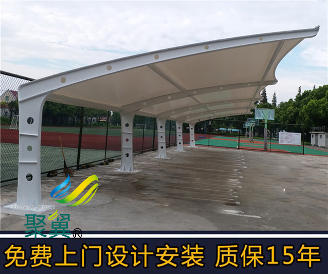 膜結(jié)構(gòu)車棚是當(dāng)今建筑技術(shù)和材料科學(xué)發(fā)展的新型結(jié)構(gòu)體系,膜結(jié)構(gòu)車棚張拉結(jié)構(gòu)中最新發(fā)展的一種形式。在本世紀(jì)五十年代,悄然開始流行于國際建筑潮流上,至今已有幾十年歷史。在我國大大小小從事膜結(jié)構(gòu)車棚建筑的企業(yè)也非常多,其中聚翼就已在膜結(jié)構(gòu)產(chǎn)業(yè)的版圖里建立了牢不可破的一方城池。