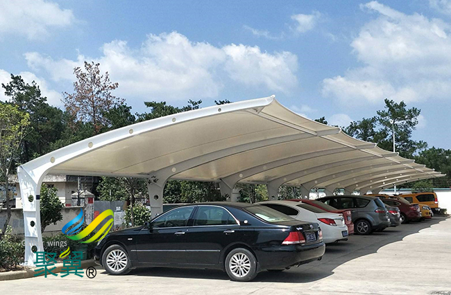 膜結(jié)構(gòu)車棚特點(diǎn)是強(qiáng)度高、耐久性好、阻燃、自潔性好、不受紫外線照射、使用壽命長,一般為15-30年。