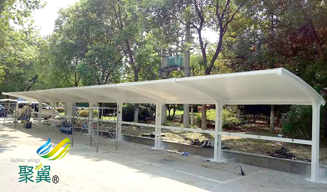 膜結構車棚工程能提供豐富多彩的用途,并與園林景觀溶為一體,創(chuàng)造出讓人們盡情享受的快樂空間,充分展示了膜結構車棚結構構件清晰受力的藝術之美,景觀膜結構車棚用來做公園小品建筑,為這景觀環(huán)境裝飾更添藝術色彩。