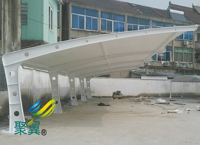 膜結構車棚自行車棚這種戶外的設施要有一定的抗風性,像這種膜材也十分能適應這種環(huán)境,通過試驗發(fā)現(xiàn),膜結構車棚膜材的抗風能力*高達到十一級。