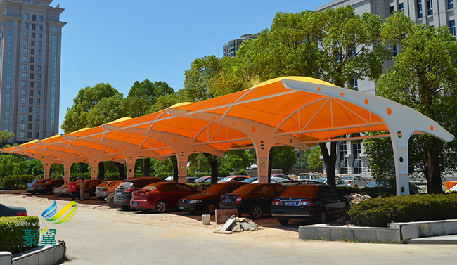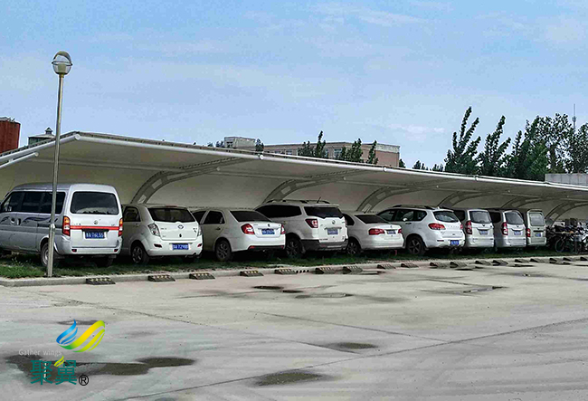 膜結(jié)構(gòu)車棚受力點小,單位尺寸上能承受的壓強高,因此在多次的實踐中,膜結(jié)構(gòu)車棚都穩(wěn)固如山。
