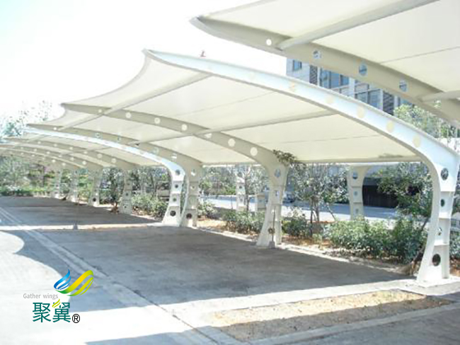 膜結(jié)構(gòu)車棚能源消耗低,膜結(jié)構(gòu)車棚能夠保證適當(dāng)?shù)淖匀还馍⒙谑覂?nèi),因?yàn)槟そY(jié)構(gòu)車棚的的反射性較高和光吸收性較低。膜結(jié)構(gòu)車棚的重量輕、可以不需要內(nèi)部支撐面就能夠?qū)崿F(xiàn)大跨度的覆蓋,目前在學(xué)校、政府、住宅等地方有著**廣大的應(yīng)用。