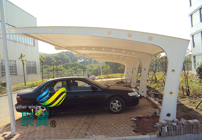 膜結(jié)構(gòu)車(chē)棚選用進(jìn)口PVDF膜材料配鋼結(jié)構(gòu)骨架,表面處理采用進(jìn)口船用底漆,炳烯酸聚氨酯面漆藝術(shù)性:除了一般遮陽(yáng)棚不可比擬的實(shí)用、耐用、遮風(fēng)擋雨的功能外,膜結(jié)構(gòu)車(chē)棚更是一座雕塑,一件藝術(shù)品,給人美的視覺(jué)享受。