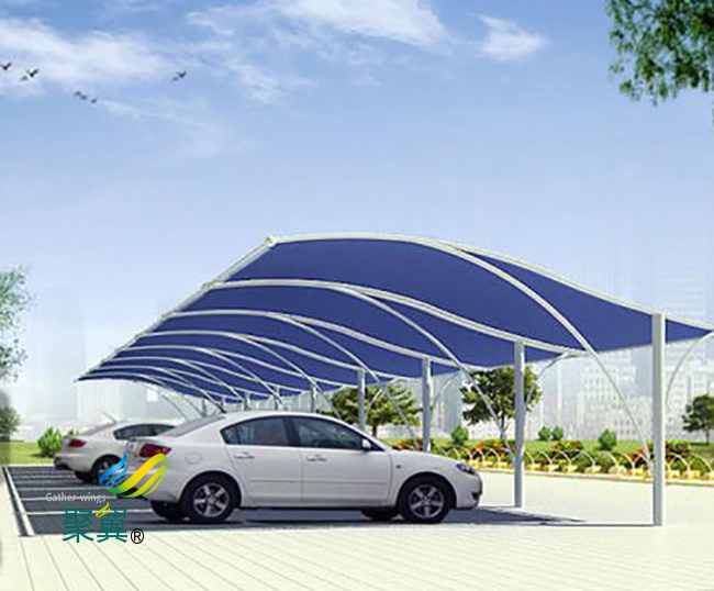 張拉膜結構車棚,這兩種結構使得膜結構車棚的安全性最大程度的增強。除此之外,不管是它的結構還是膜結構車棚的造型都是比較的美觀的。