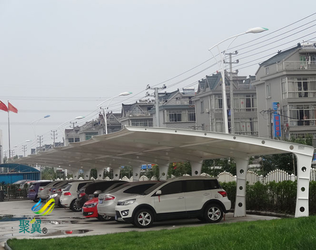 膜結(jié)構(gòu)車棚具有藝術(shù)性,除了一般的雨篷具有不可比擬的使用價(jià)值,且比較耐用,膜結(jié)構(gòu)車棚具有遮風(fēng)擋雨的效果,不僅如此,還具有給人美觀的享受。膜結(jié)構(gòu)車棚本身柔美曲線的效果,且可以剛?cè)岵?jì),造型豐富,使用的時(shí)候十分便利。