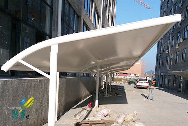 不過最后因?yàn)槟そY(jié)構(gòu)車棚膜材光透性,白天陽光透過膜材形成慢射光,讓膜結(jié)構(gòu)車棚膜覆蓋空間內(nèi)達(dá)到和室外幾乎一樣自然效果,專家認(rèn)為膜結(jié)構(gòu)車棚能夠創(chuàng)造出和自然環(huán)境相媲美的空間形式。
