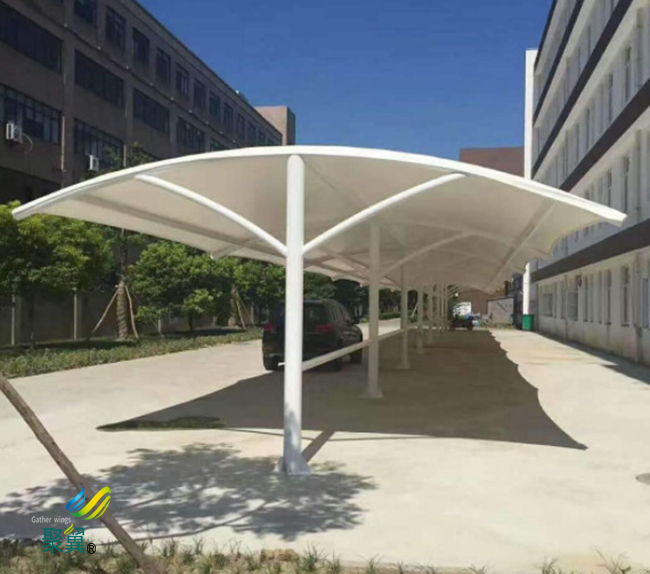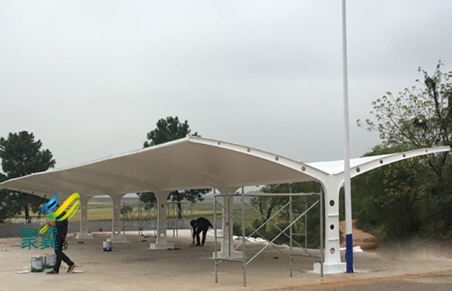 膜結(jié)構(gòu)車棚的工期是很短的,在拆裝的時(shí)候也是很方便的。它的結(jié)構(gòu)形式是很簡潔的,設(shè)計(jì)也是很專業(yè)的,整個(gè)工藝流程也會(huì)很完善,這樣膜結(jié)構(gòu)車棚在制作的過程中時(shí)間就會(huì)大大縮短,膜結(jié)構(gòu)車棚所采用的是可以調(diào)節(jié)和裝卸的節(jié)點(diǎn)形式。