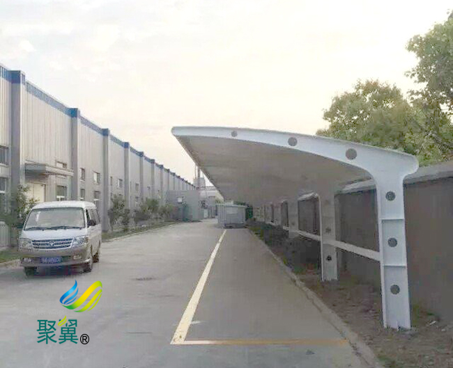 膜結(jié)構(gòu)車棚可以從根本上克服傳統(tǒng)結(jié)構(gòu)在大跨度(無支撐)建筑上實現(xiàn)時所遇到的困難,可創(chuàng)造巨大的無遮擋的可視空間。膜結(jié)構(gòu)車棚造型自由輕巧、阻燃、制作簡易、安裝快捷、節(jié)能、易于、使用安全等優(yōu)點,因而使膜結(jié)構(gòu)車棚在世界各地受到廣泛應(yīng)用。另外值得一提的是,在陽光的照射下,由膜結(jié)構(gòu)車棚膜覆蓋的建筑物內(nèi)部充滿自然漫射光,無強反差的著光面與陰影的區(qū)分,棚內(nèi)的空間視覺環(huán)境開闊和諧。