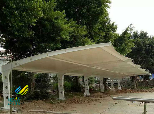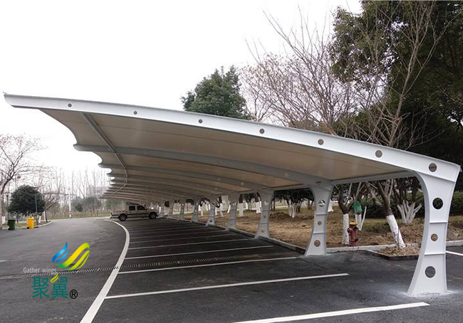 例行維護(hù),膜結(jié)構(gòu)車棚是能承受一定的外荷載作用的一種空間結(jié)構(gòu)形式因此主要是對膜結(jié)構(gòu)車棚處于不正常狀態(tài)時(shí)候進(jìn)行調(diào)節(jié),不正常狀態(tài),應(yīng)采取預(yù)張力補(bǔ)強(qiáng)或其他措施,連接件如有松動會重新擰緊或予以加固等等方法。