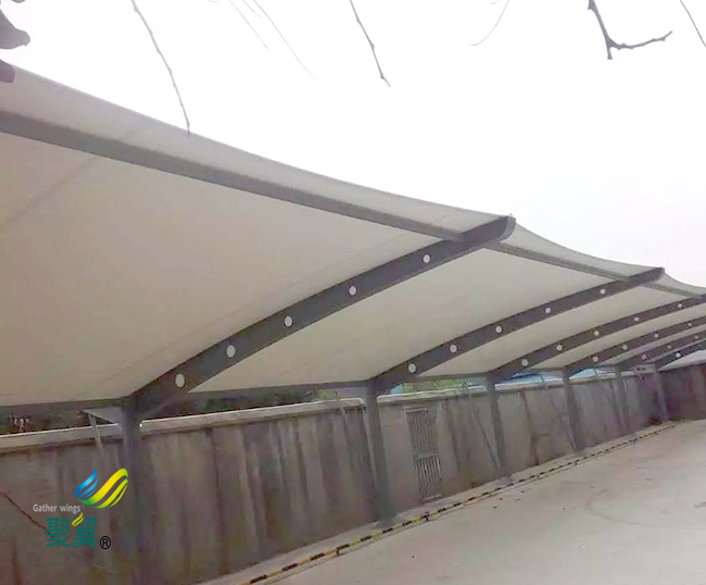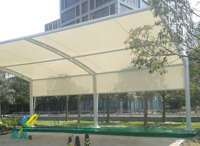為改善膜結(jié)構(gòu)車棚性能,可在其表面涂一層聚四氟乙烯涂層,提高其抗老化和自潔能力,膜結(jié)構(gòu)車棚壽命可達(dá)到15年左右。
