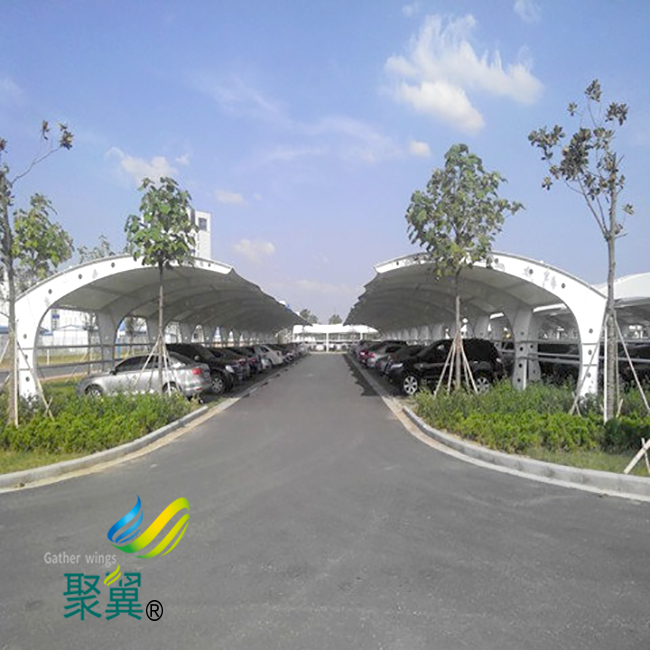 膜結(jié)構(gòu)車棚材料選用了進(jìn)口結(jié)構(gòu)建筑材料,車棚骨架,表面處理采用進(jìn)口船用底漆,炳烯酸聚氨酯面漆。由于高強(qiáng)度的 膜結(jié)構(gòu)車棚膜材出現(xiàn),再加上張拉技術(shù)的應(yīng)用,使膜結(jié)構(gòu)車棚抵御風(fēng)雨的能力是一般雨蓬之類不可比擬的。有的車棚采用永久性膜材,可使用三、四十年。特別是遇到劇烈的暴風(fēng)雨天氣, 膜結(jié)構(gòu)車棚建筑巍然不動(dòng),毫發(fā)不損。