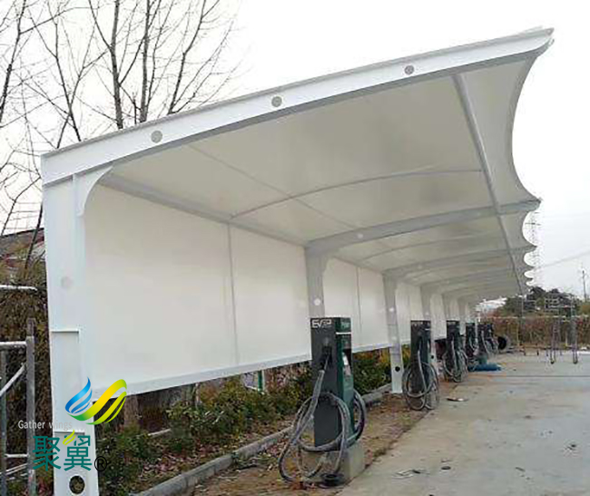 膜結(jié)構(gòu)車棚內(nèi)部采用38鍍鋅圓管與車棚框架焊接,加強(qiáng)棚頂部強(qiáng)度,可讓棚內(nèi)感覺寬敞明亮,停靠車輛輕松方便,完全符合 膜結(jié)構(gòu)車棚制作要求規(guī)范。