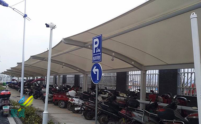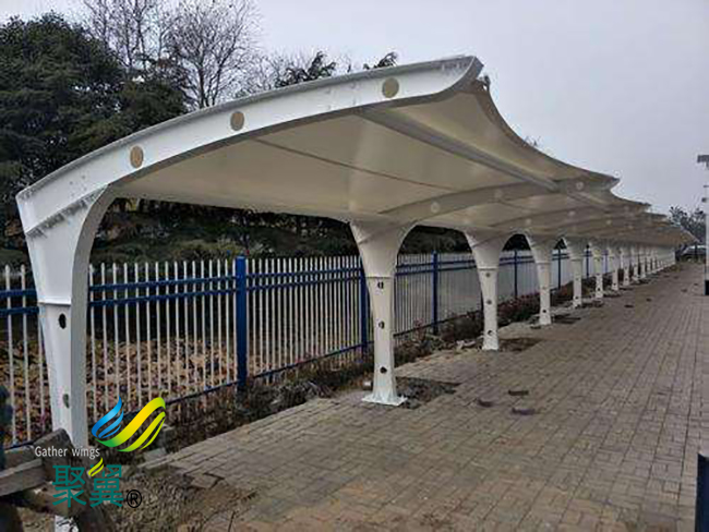 膜結(jié)構(gòu)車棚藝術(shù)性。膜結(jié)構(gòu)突破了傳統(tǒng)的建筑結(jié)構(gòu)類型,以造型學(xué)、色彩學(xué)為依托,可結(jié)合自然條件, 膜結(jié)構(gòu)車棚充分發(fā)揮建筑師的想象力,根據(jù)創(chuàng)意建造出傳統(tǒng)建筑難以實(shí)現(xiàn)的曲線及各種造型,且色彩豐富,富有時代氣息, 膜結(jié)構(gòu)車棚體現(xiàn)結(jié)構(gòu)構(gòu)件受力之美。配合燈光易形成夜景,給人以現(xiàn)代美的享受。