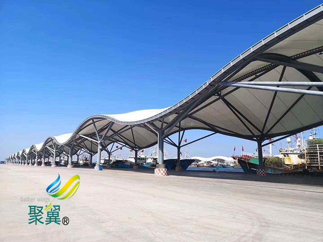 膜結(jié)構(gòu)車棚材料選用了進(jìn)口結(jié)構(gòu)建筑材料,車棚骨架,表面處理采用進(jìn)口船用底漆,炳烯酸聚氨酯面漆。由于膜結(jié)構(gòu)車棚高強(qiáng)度的膜結(jié)構(gòu)車棚膜材出現(xiàn),再加上張拉技術(shù)的應(yīng)用,使膜結(jié)構(gòu)車棚抵御風(fēng)雨的能力是一般雨蓬之類不可比擬的。