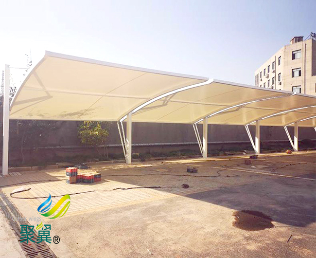 膜結(jié)構(gòu)車棚透光性能好(透光率20%)。在陽(yáng)光下曝曬不會(huì)產(chǎn)生黃變、霧化、透光不佳。重量輕,絕對(duì)保證膜結(jié)構(gòu)車棚棚下人和物的安全,隔音效果佳。在攝氏族-40.C至+120.C溫度范圍內(nèi)不會(huì)引起變形等品質(zhì)劣化。