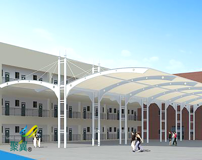 膜結(jié)構(gòu)車棚膜材的密閉性能很好的解決場地?zé)焿m收集、揚(yáng)塵抑制、防雨防潮等要求,結(jié)合膜結(jié)構(gòu)車棚膜材柔韌的特性。