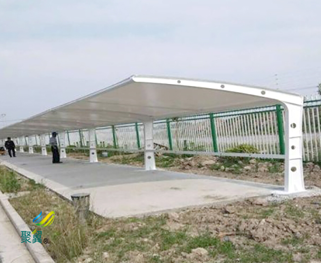 鋼構(gòu)造膜結(jié)構(gòu)車棚的支架構(gòu)造經(jīng)過鋼資料的拼接焊接而成,膜結(jié)構(gòu)車棚特性是結(jié)實(shí),也能遮風(fēng)擋雨,就是外型單一,拆裝比擬費(fèi)事,但是抗震防風(fēng)才能強(qiáng)。