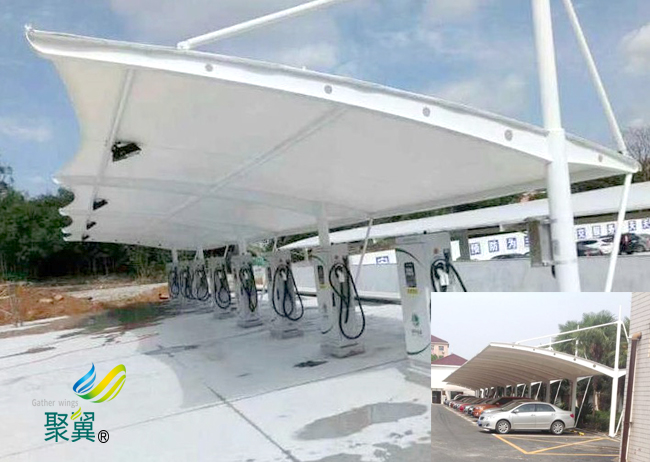 膜結(jié)構(gòu)車棚停車設(shè)計|膜結(jié)構(gòu)車棚建筑工期短