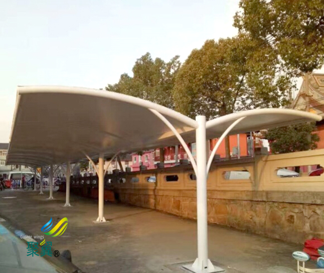 張力膜結構的膜材料有兩大類:一類為玻璃纖維織物聚四氟乙烯涂層(一般稱PE膜材),使用年限長,價格高,國內很少采用。另一類為高強聚酯纖維織物PvC涂層(一般稱PvC膜材),使用年限相對較短,價格適宜,國內較多采用。