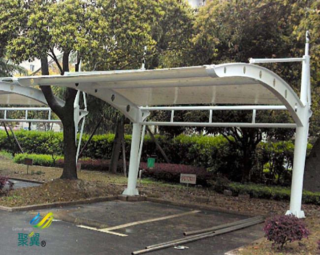 膜結(jié)構(gòu)車棚除了其實(shí)質(zhì)作用——保護(hù)車子之外,也被人們看成是一種藝術(shù)品,因膜結(jié)構(gòu)車棚獨(dú)特的外表越來(lái)越多地鑲嵌在現(xiàn)代建筑中,因此,膜結(jié)構(gòu)車棚也被稱為第四代建筑。