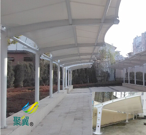 膜結(jié)構(gòu)車棚拉索在經(jīng)過(guò)一定的方式組合后而成的一種棚,這種分離的方式使膜結(jié)構(gòu)車棚的內(nèi)部產(chǎn)生了一定的預(yù)張應(yīng)力構(gòu)成了空間的外形,這也是作掩蓋結(jié)構(gòu)并承受一定外荷載的空間結(jié)構(gòu)的方式構(gòu)造。