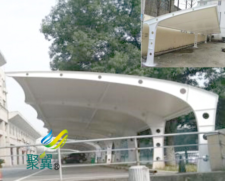 膜結(jié)構(gòu)車棚建筑設(shè)計(jì)師提供了更大的想象和創(chuàng)造空間。具有良好的環(huán)保性、透光性、自清潔性,膜結(jié)構(gòu)車棚膜材表面采用PVDF(聚偏二氟乙烯)涂層、或二氧化鈦涂層,膜結(jié)構(gòu)車棚具有較好的隔熱效果,對太陽熱能可反射掉70%,膜結(jié)構(gòu)車棚膜材本身吸收了17%,傳熱13%,而透光率卻在20%以上,經(jīng)過10年的太陽光直接照射,膜結(jié)構(gòu)車棚輝度仍能保留70%。