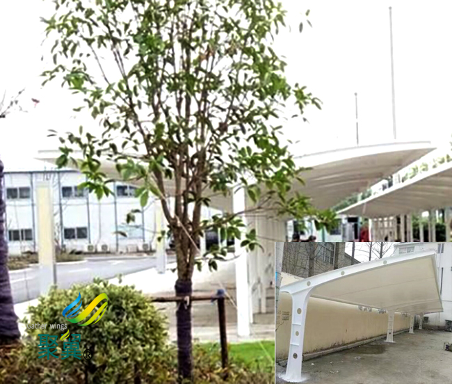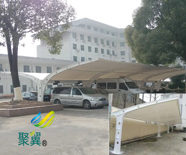 膜結(jié)構(gòu)車棚景觀造型不同,可呈現(xiàn)多變、新穎、吸引人的視覺結(jié)果。膜結(jié)構(gòu)車棚的應(yīng)用范圍限于體育或展覽建筑,還擴展到住宅和景觀建筑。