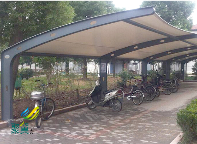 膜結(jié)構(gòu)車棚是一種采用最新的膜材料制成的車棚,這種新型車棚正在被得到廣泛使用。除了體育場所我們經(jīng)常可以看到外,在學(xué)?;蛘邊^(qū)民區(qū)這種結(jié)構(gòu)的膜結(jié)構(gòu)車棚也隨處可見。隨著產(chǎn)品應(yīng)用的普及,這種膜結(jié)構(gòu)車棚的大量使用已經(jīng)成為城市中一道亮麗的風(fēng)景。