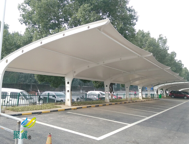 膜結(jié)構(gòu)車棚是一種高強薄膜和鋼結(jié)構(gòu)、拉索在經(jīng)過一定的方式組合后而成的一種棚,這種分離的方式使膜結(jié)構(gòu)車棚的內(nèi)部產(chǎn)生了一定的預(yù)張應(yīng)力構(gòu)成了空間的外形,這也是作掩蓋結(jié)構(gòu)并承受一定外荷載的空間結(jié)構(gòu)的方式構(gòu)造。