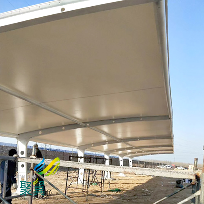 請(qǐng)求光照多且亮度高的商業(yè)建筑等尤為重要。經(jīng)過(guò)自然采光與人工采光的綜合應(yīng)用,膜結(jié)構(gòu)車棚膜材透光性可為建筑設(shè)計(jì)提供更大的美學(xué)創(chuàng)作空間。夜晚,透光性將舞臺(tái)膜結(jié)構(gòu)車棚膜構(gòu)造變成了光的雕塑,為藝術(shù)扮演添加顏色。