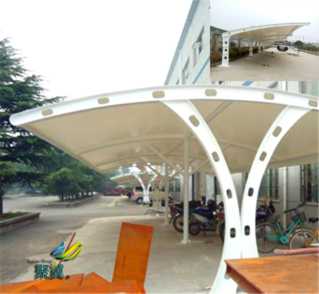 膜結構車棚的最大跨度已超過200米,膜結構車棚造型獨特,新穎美觀,色彩豐富,別具一格。