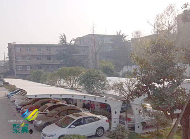 膜結(jié)構(gòu)車棚膜材在我國既有的膜結(jié)構(gòu)建筑上廣泛使用,目前的發(fā)展趨勢是逐漸被PTFE建筑膜材所取代。膜結(jié)構(gòu)車棚PVC材料的主要特點(diǎn)是強(qiáng)度低、彈性大、易老化、徐變大、自潔性差,但膜結(jié)構(gòu)車棚價(jià)格便宜,容易加工制作,色彩豐富,抗折疊性能好。為改善膜結(jié)構(gòu)車棚性能,可在其表面涂一層聚四氟乙烯涂層,提高其抗老化和自潔能力,其壽命可達(dá)到15年左右。