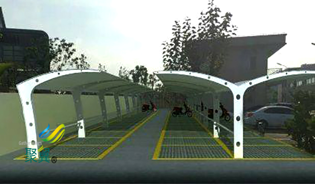 膜結(jié)構車棚藝術性。膜結(jié)構車棚突破了傳統(tǒng)的建筑結(jié)構類型,以造型學、色彩學為依托,可結(jié)合自然條件,充分發(fā)揮建筑師的想象力,根據(jù)創(chuàng)意建造出傳統(tǒng)建筑難以實現(xiàn)的曲線及各種造型,且色彩豐富,富有時代氣息,體現(xiàn)膜結(jié)構車棚結(jié)構構件受力之美。配合燈光易形成夜景,給人以現(xiàn)代美的享受。經(jīng)濟性,膜結(jié)構車棚能夠拆卸,易于搬遷,特別是在建造短期應用的大跨度建筑時,更為經(jīng)濟。