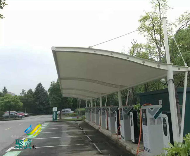 膜結(jié)構(gòu)車(chē)棚可以用哪些膜布|膜結(jié)構(gòu)膜布有哪些種類(lèi) 膜結(jié)構(gòu)車(chē)棚主要是用PVC材料的主要特點(diǎn)是強(qiáng)度低、彈性大、易老化、徐變大、自潔性差,但